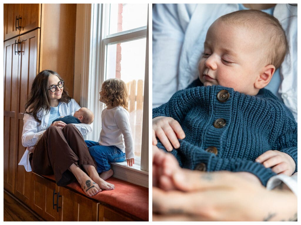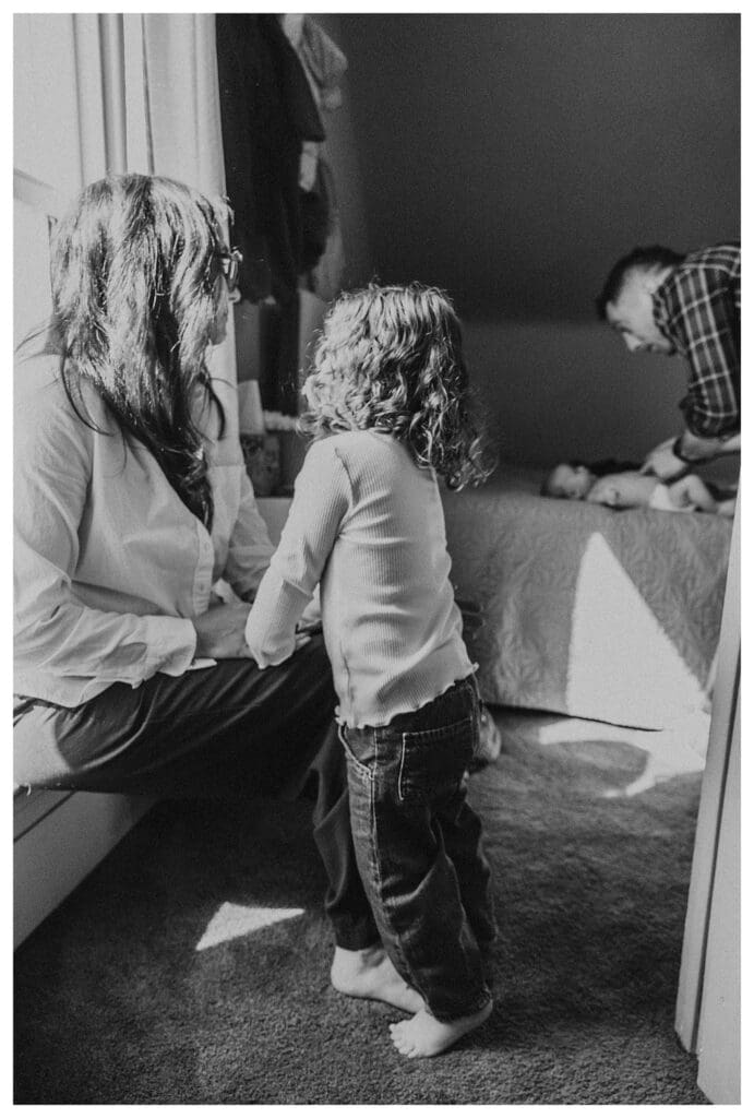 This session was also especially meaningful to me for another reason—this is the second time Alexis and Colin have welcomed me into their home to photograph their newborn baby. There’s something so special about being invited back into a family’s life during such intimate, transformative moments. It’s not just about documenting a new baby; it’s about witnessing growth, change, and the deepening of love over time. And watching their first newborn hold their second…goodness! All the feels!